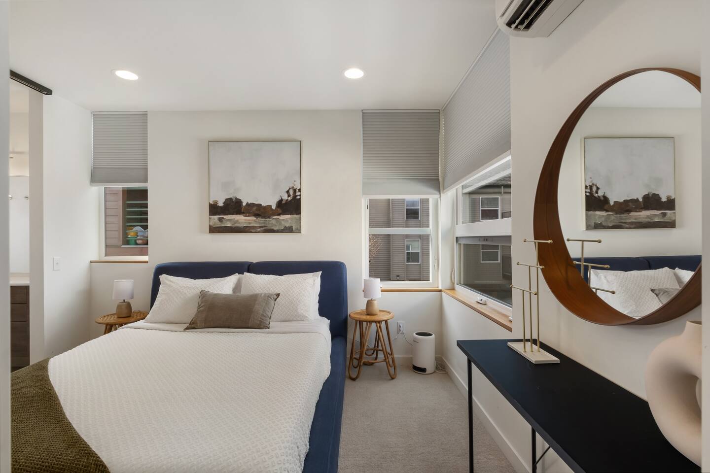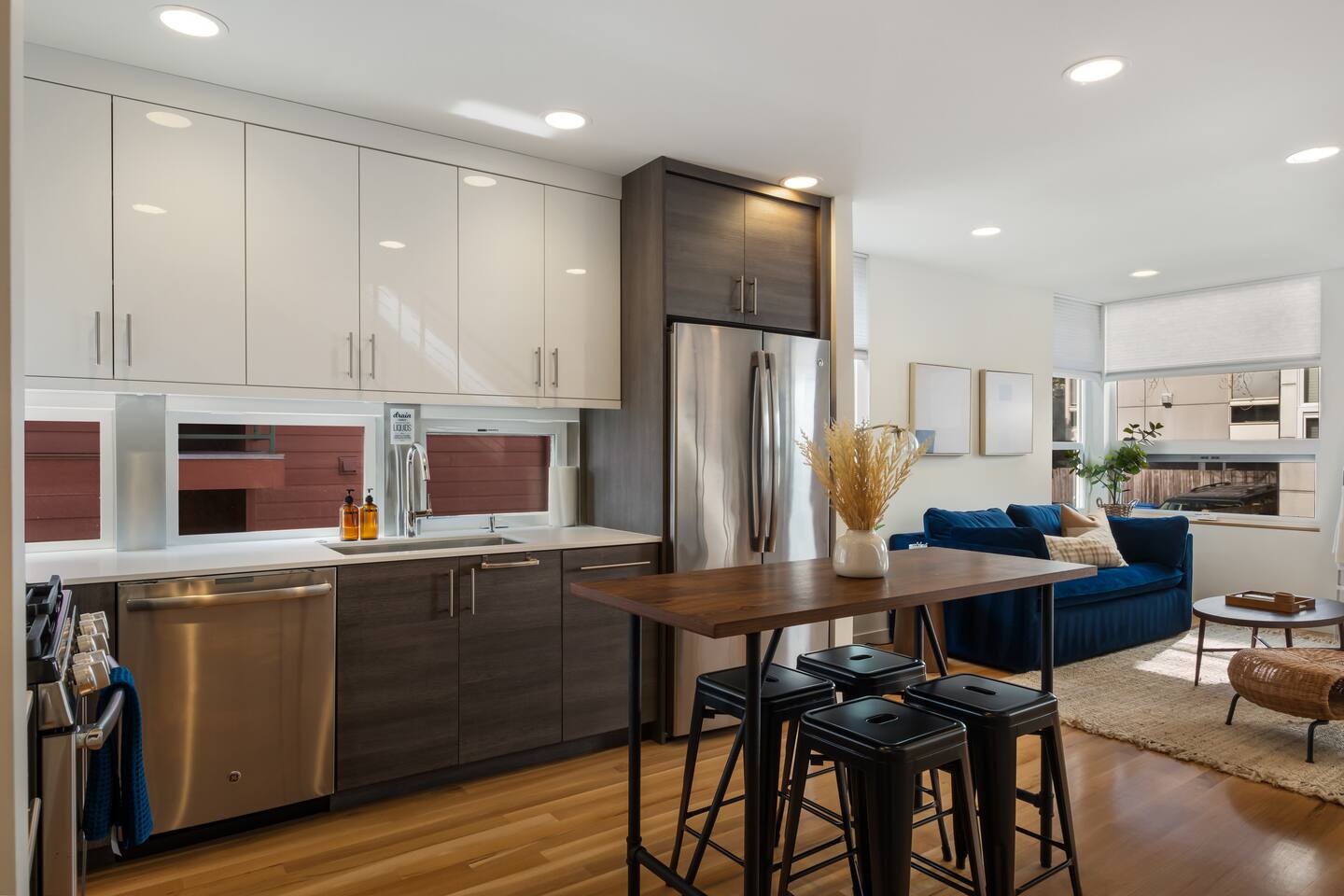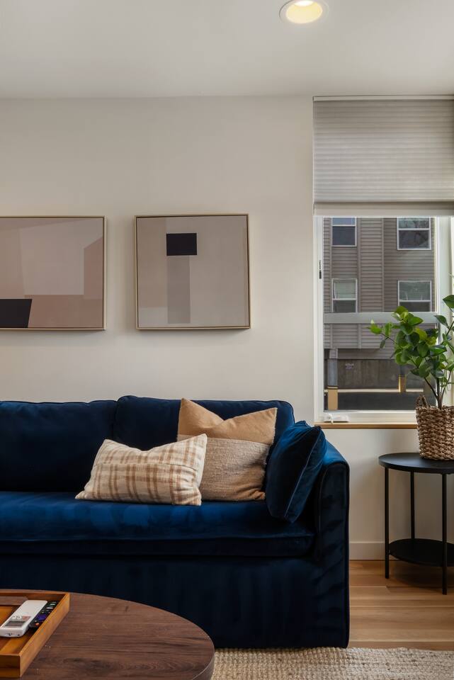 The living room sofa is a queen-size sleeper sofa that could be covered with a queen-size bed. The bed's plush memory foam mattress guaranteed your sleep comfort. It has a spacious fully stocked kitchen and Casper memory foam mattresses, luxury linen with thoughtful and inviting design. It is in a quiet residential street, excellent public transportation, close to Amazon Fresh and several restaurants, and a short drive to downtown or Cap Hill!