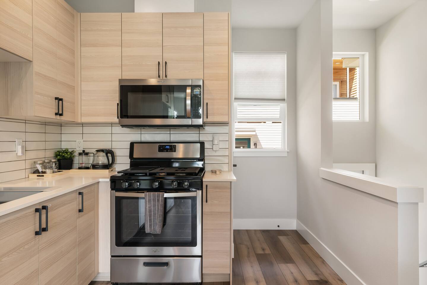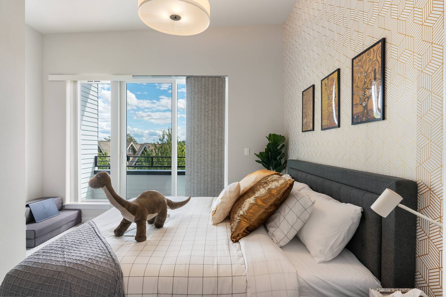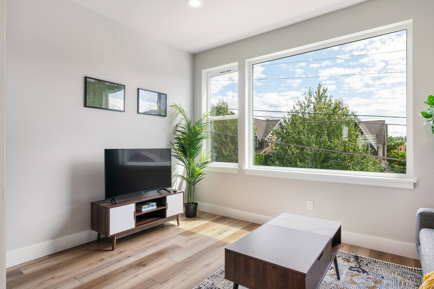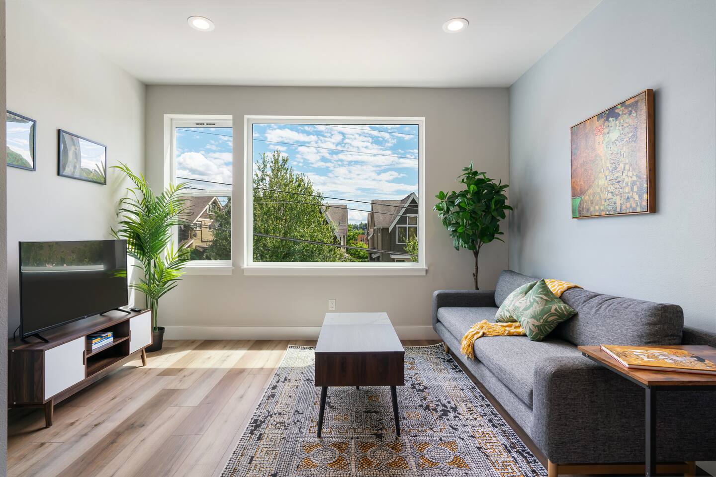 Sparkling clean and designed to capture the essence of the Pacific Northwest, this building features wood siding and modern design. Inside, the unit is thoughtfully decorated with lush green plants, gold accents, and artwork by Gustav Klimt. Ideally located within walking distance to restaurants, cafes, and public transit options, the space offers both convenience and a peaceful retreat, tucked away from the hustle of busy streets. ⚽ World Cup 2026 Friendly This home is a comfortable and convenient base for guests attending **FIFA World Cup 2026 matches** in Seattle. It offers easy access to Lumen Field via a short drive, rideshare, or light rail, plus reliable Wi-Fi, comfortable living space, and features that make match-day travel easier than staying in a hotel. Highlights include: Private Rooftop Deck: Enjoy stunning views of Mt. Rainier and downtown Seattle. Sip coffee or dine at the patio table with two chairs, perfect for relaxation or entertainment. One Bedroom: A plush, king-size bed invites restful sleep. Surrounded by plants and calming artwork, this space is a serene retreat. One Bathroom: Bright and clean, featuring a walk-in shower and dual sinks with ample drawer space. Full Kitchen: A fully equipped kitchen with all-new appliances, including an oven, stove, electric kettle, French press, and basic condiments, makes cooking at home easy. Living Room & Remote Workstation: A spacious and bright living area with a large couch, TV, small dining table, and large windows. For remote work, there's a dedicated workstation with a monitor, making it easy and comfortable to work from home. Washer & Dryer is available for your usage during your stay. 📍 Location & Getting Around 🏟 Lumen Field: approx. 10–15 minute drive, depending on traffic 🚇 Light Rail: about a 10–12 minute walk to the nearest station, then ~10 minutes by train to the stadiums 🚕 Easy access via rideshare or public transit on match days This central Seattle location makes it easy to enjoy World Cup matches, downtown attractions, and nearby neighborhoods while staying in a comfortable, well-connected home base.