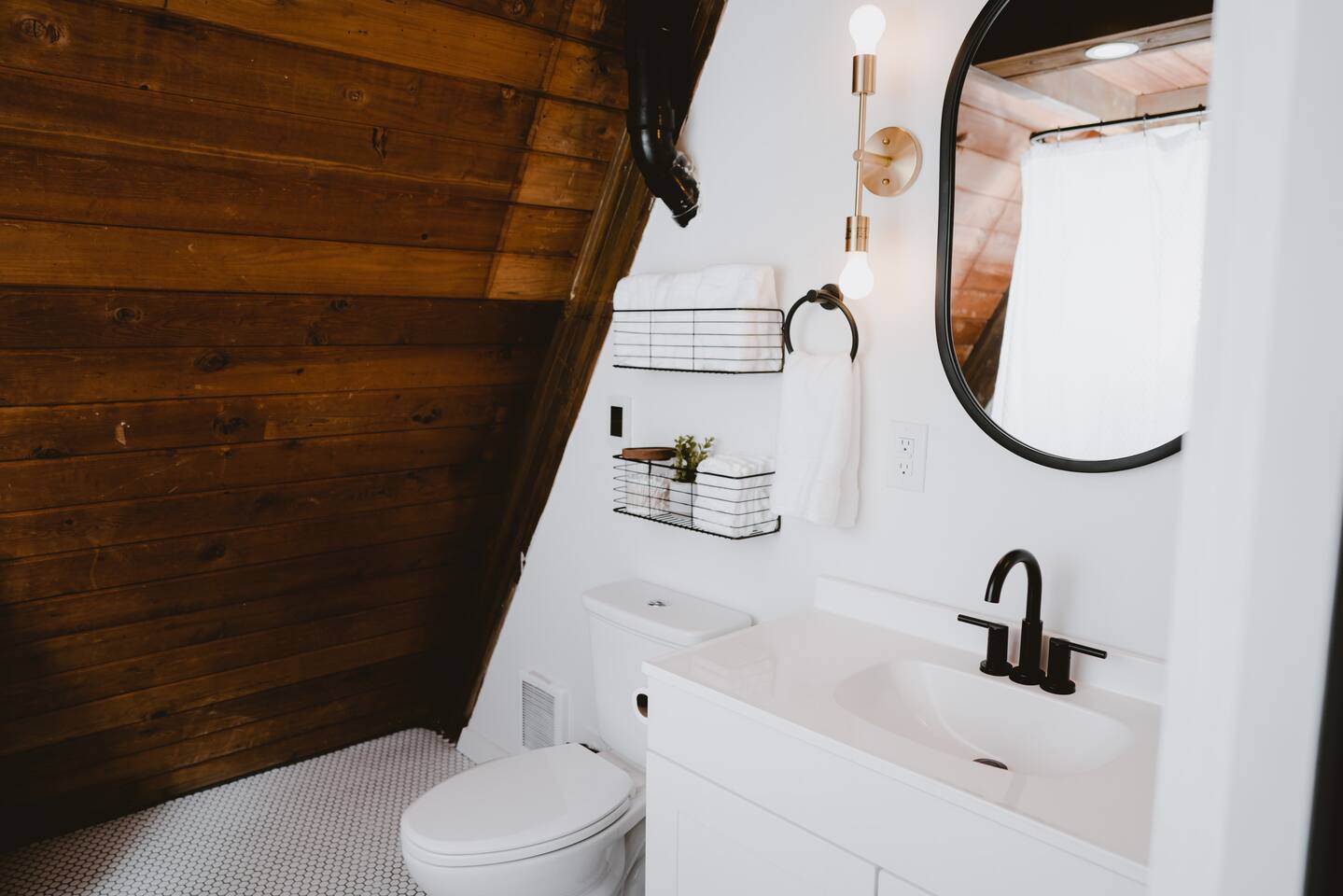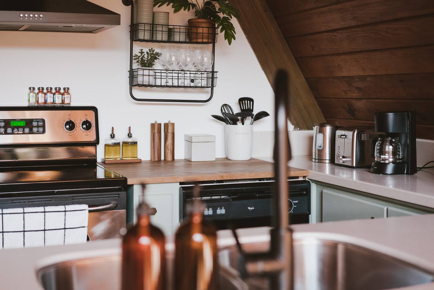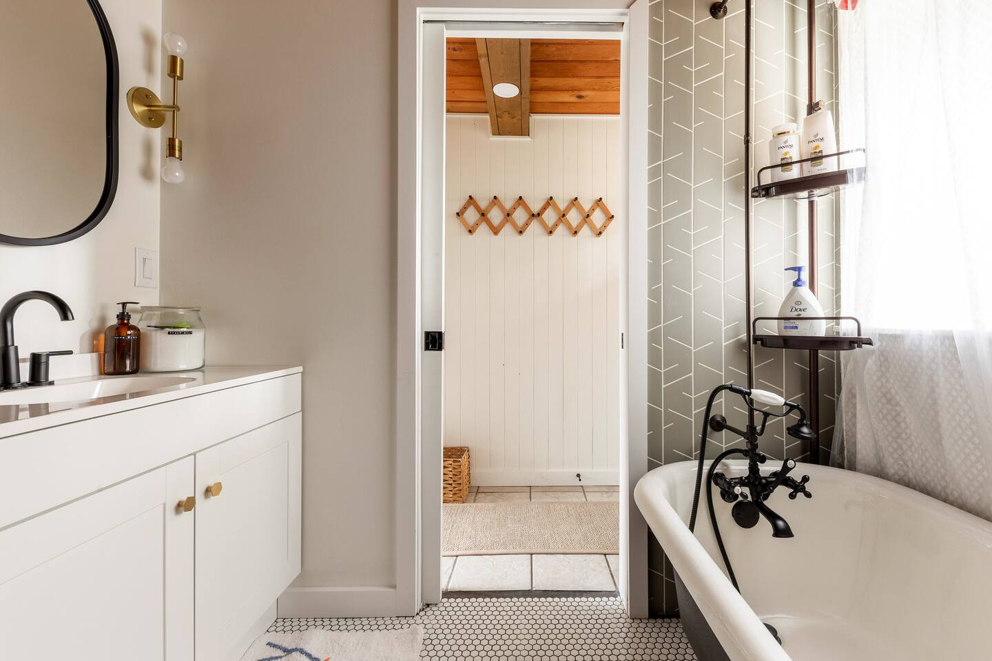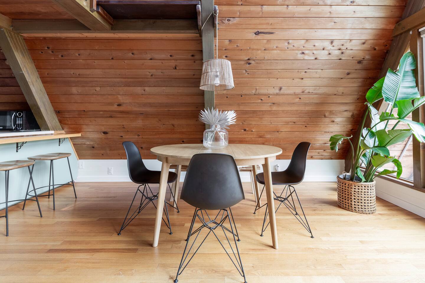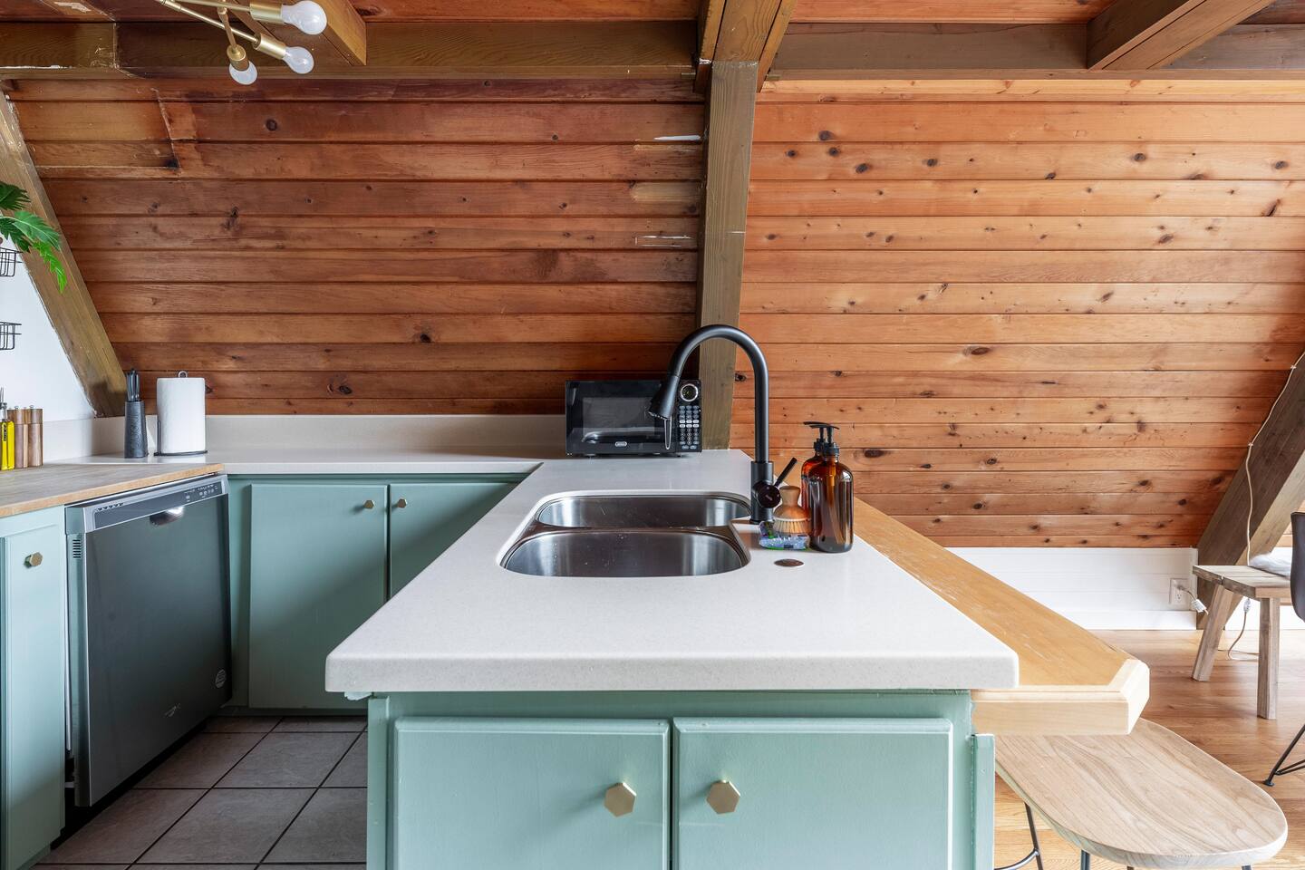 The cabin accommodates up to four adults and features two queen-sized beds, luxurious foam mattresses, and cloud-like duvets. Snuggle up in front of the gas fireplace and stream your favorite movie on the Roku Smart TV, or unwind with your favorite book in the clawfoot tub after an adventure-filled day—your feet will thank you! Finish off the evening with a home-cooked meal in the well-appointed & fully equipped kitchen. If the weather permits, be sure to enjoy a cup of evening tea on the front deck, where you’ll appreciate the abundance of mountain fresh air. The deck comes complete with an outdoor fire pit, well-maintained grill & dining area, surrounded by gorgeous mountains. If staying cozy is more your speed, you’ll be taken care of just the same. Sit back with a glass of mulled wine and soak up the rejuvenation that comes standard with the PNW A-Frame. Watch the light show stream through the windows as the sun catches the mountain peeks at Golden Hour each evening. Don’t feel like cooking? No problem! The cabin is close to several charming restaurants such as Maggy’s Family Mexican and Mountain View Diner. If you’re up for a little friendly competition, you’ll find a foosball table and several board games to keep the whole family entertained. Whether you’ve come for an adventure-packed getaway, or for some much-needed restoration, you’ll be in good hands with the PNW A-Frame.