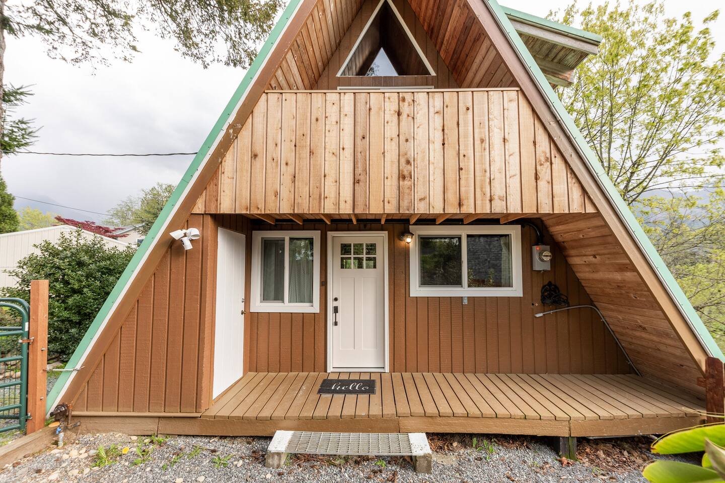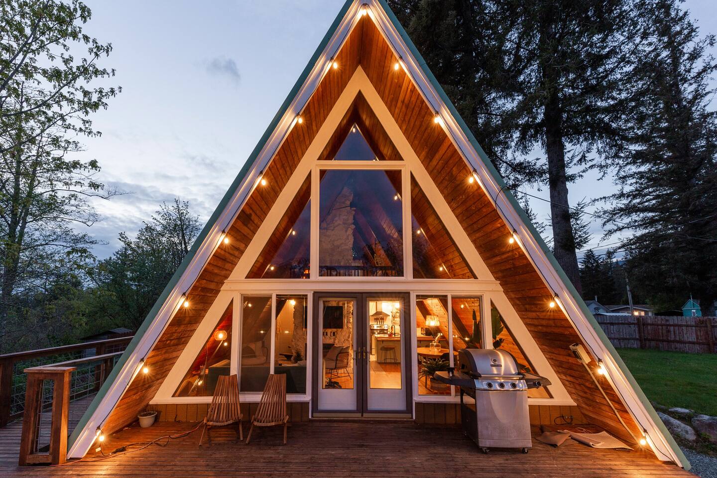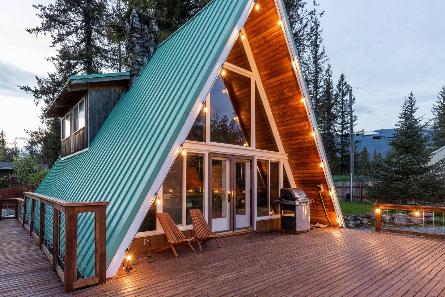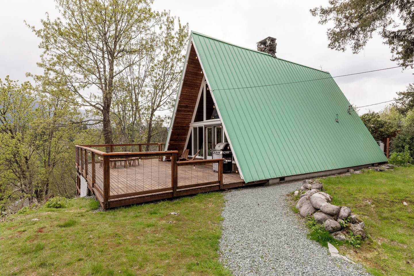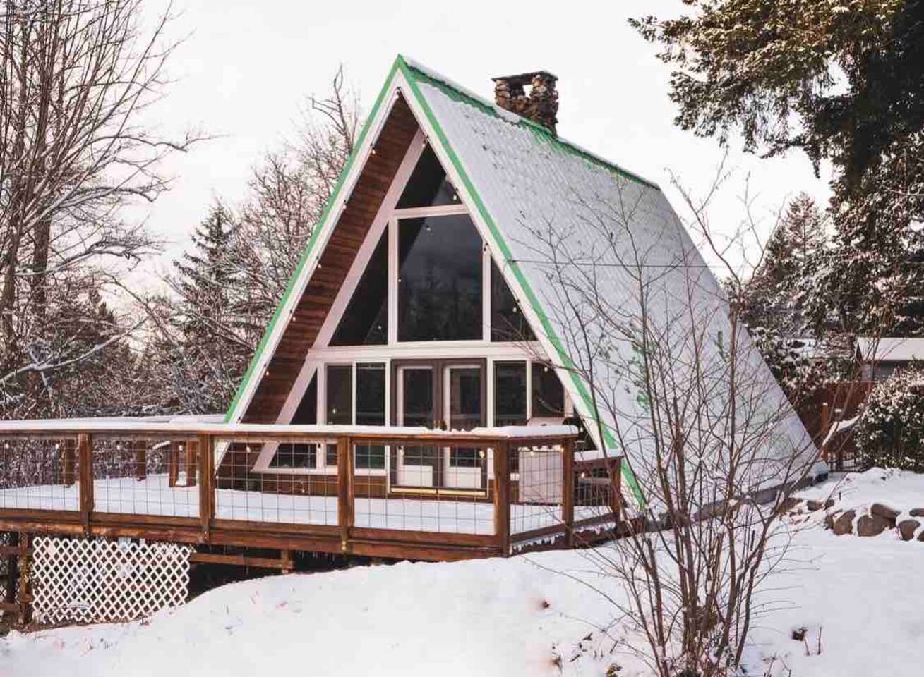 This A-frame cabin is located in a quiet neighborhood. Although occasionally you will hear the train that goes along highway 2 passing by.