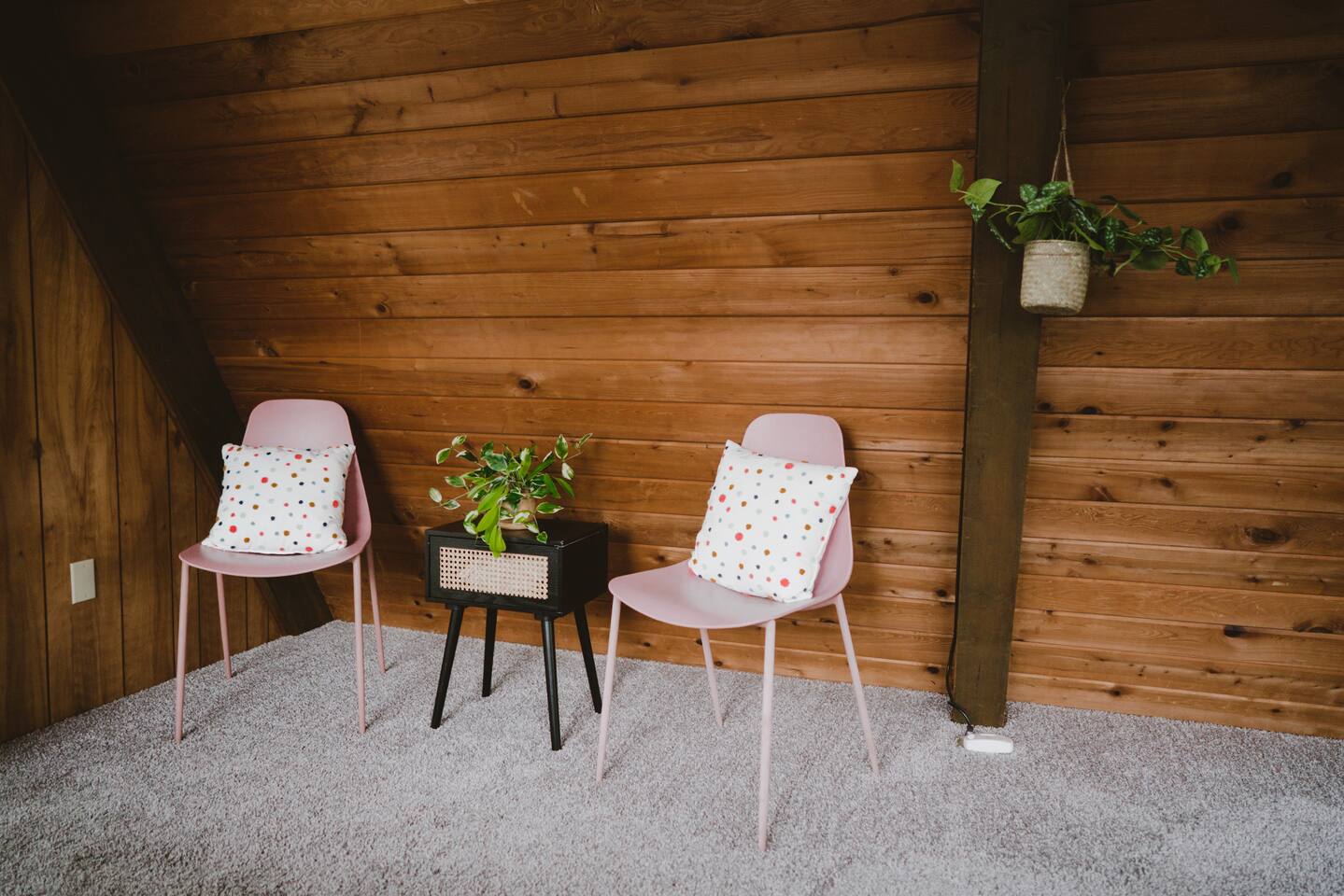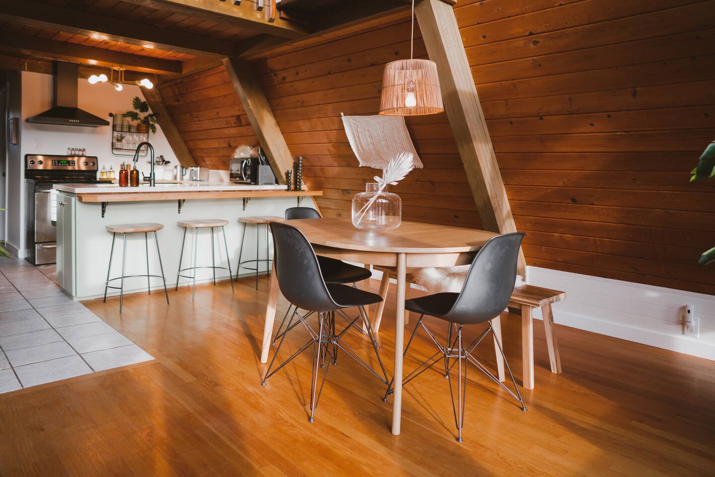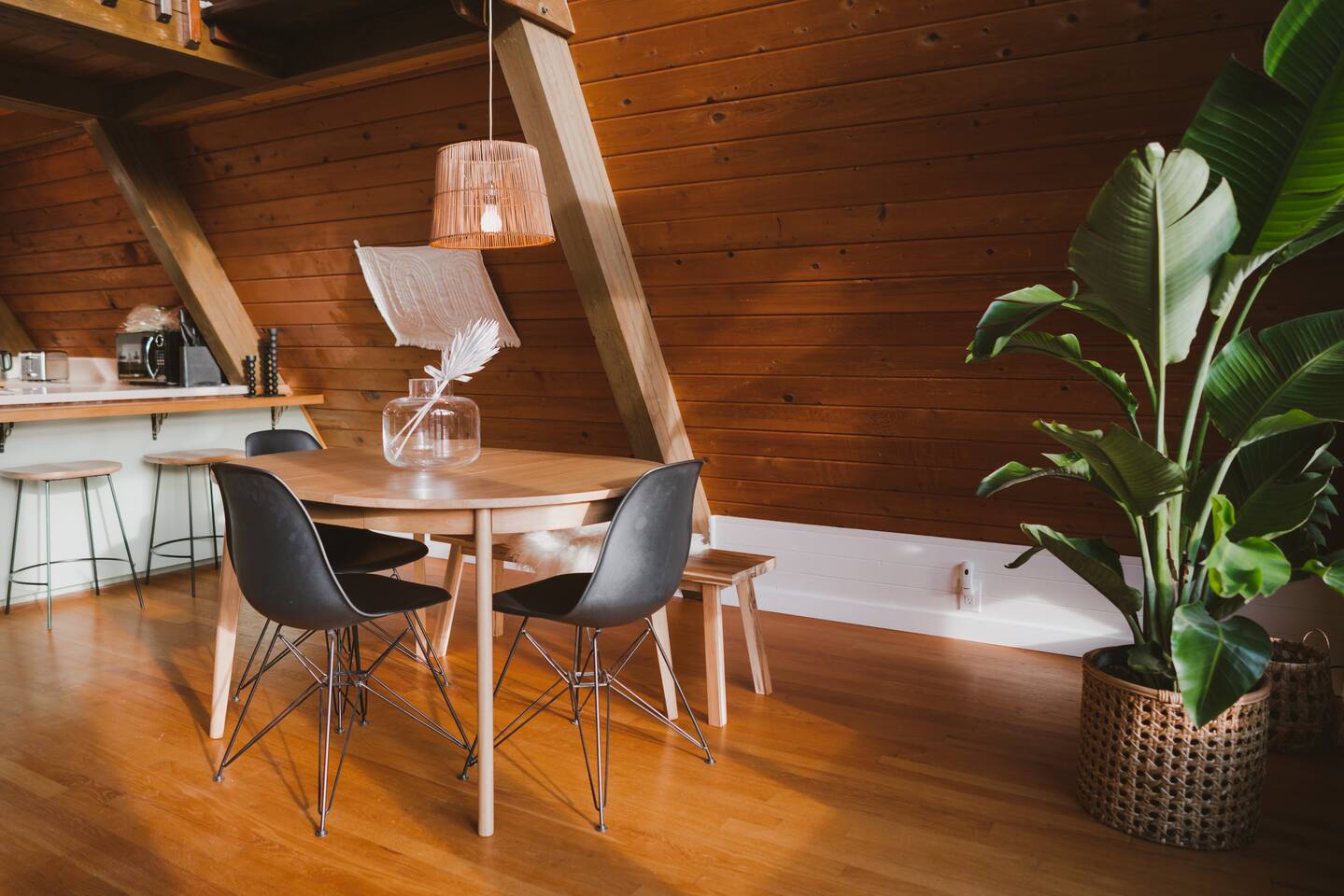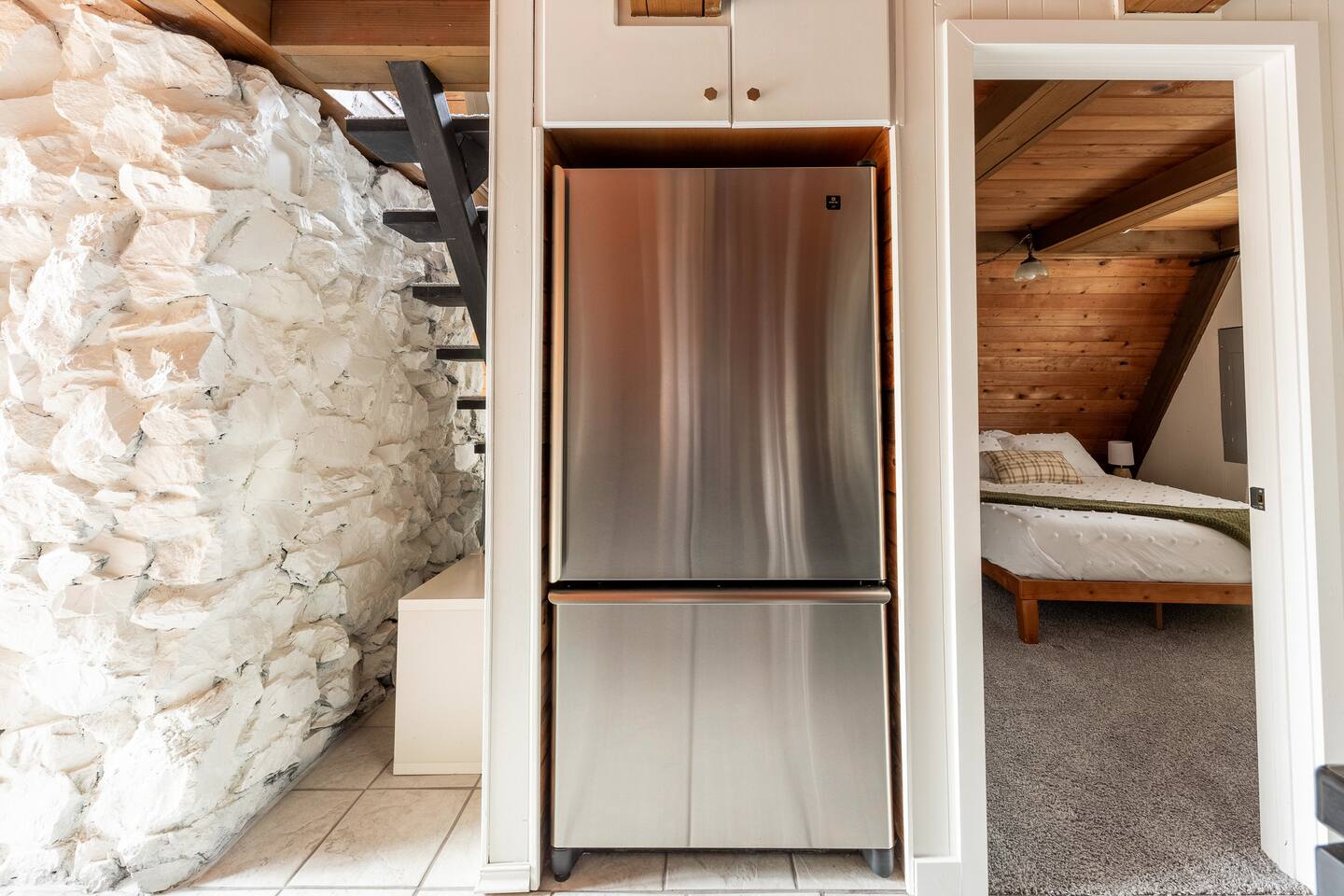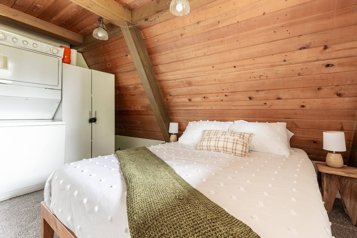 This A-frame cabin is located in a quiet neighborhood. Although occasionally you will hear the train that goes along highway 2 passing by.