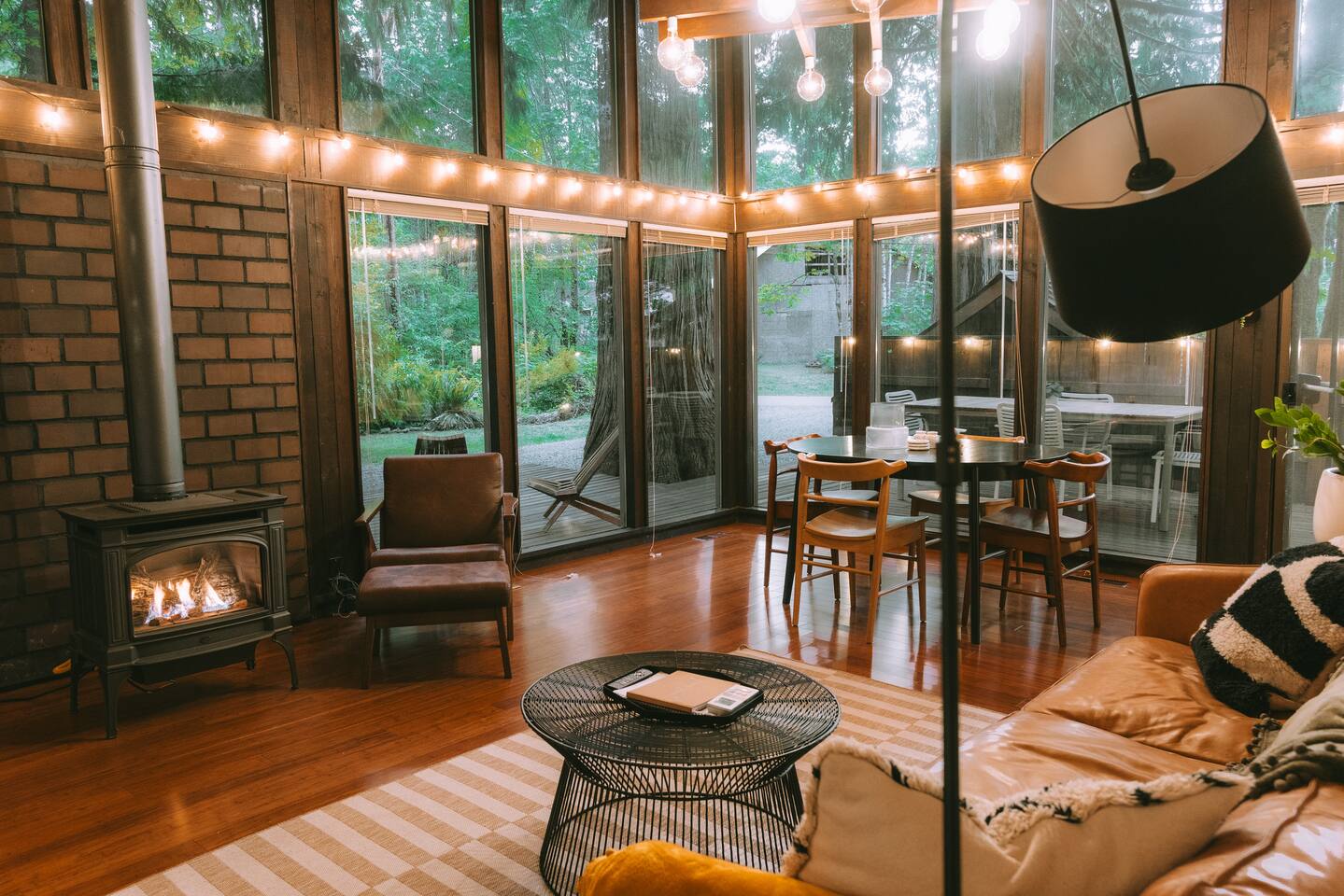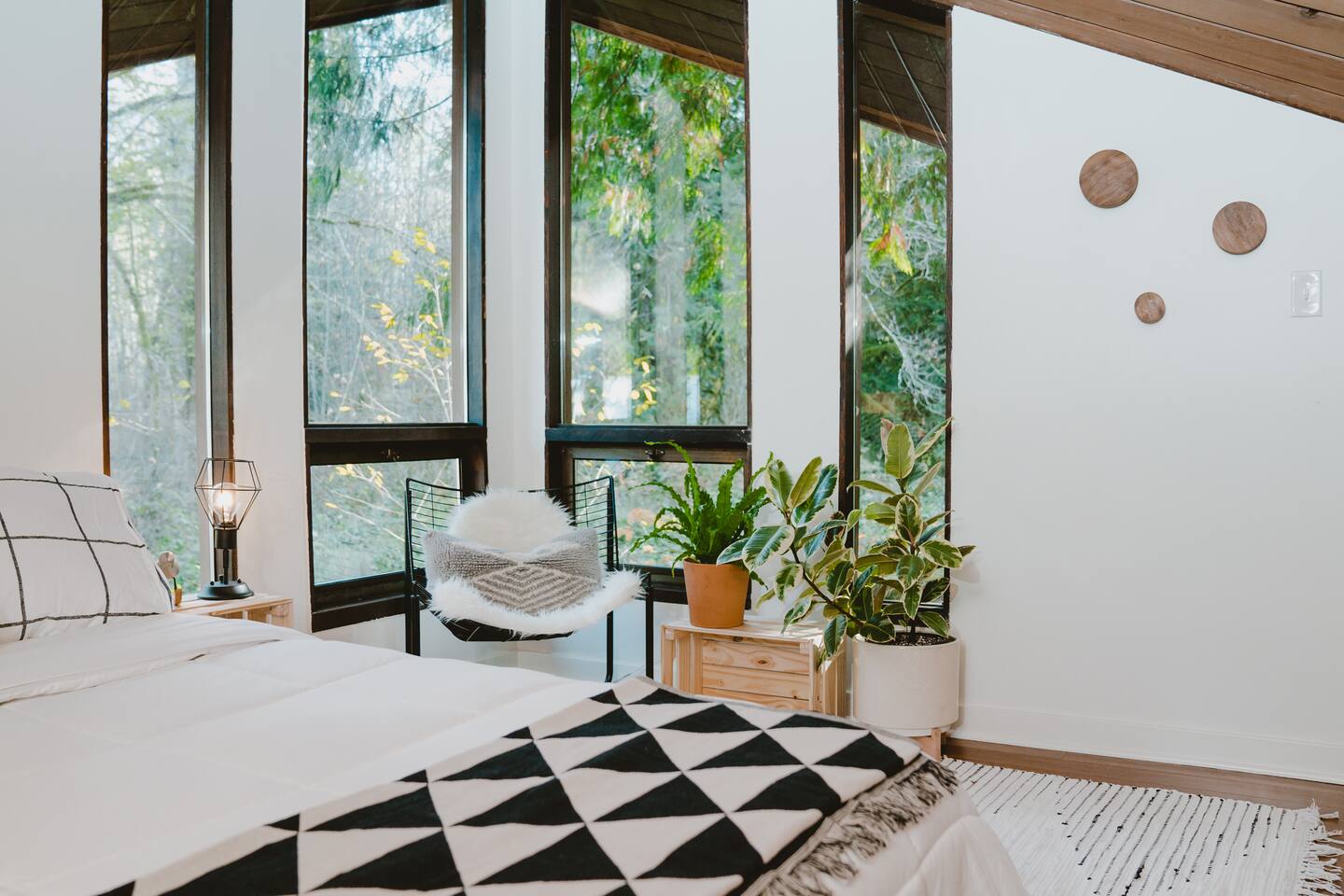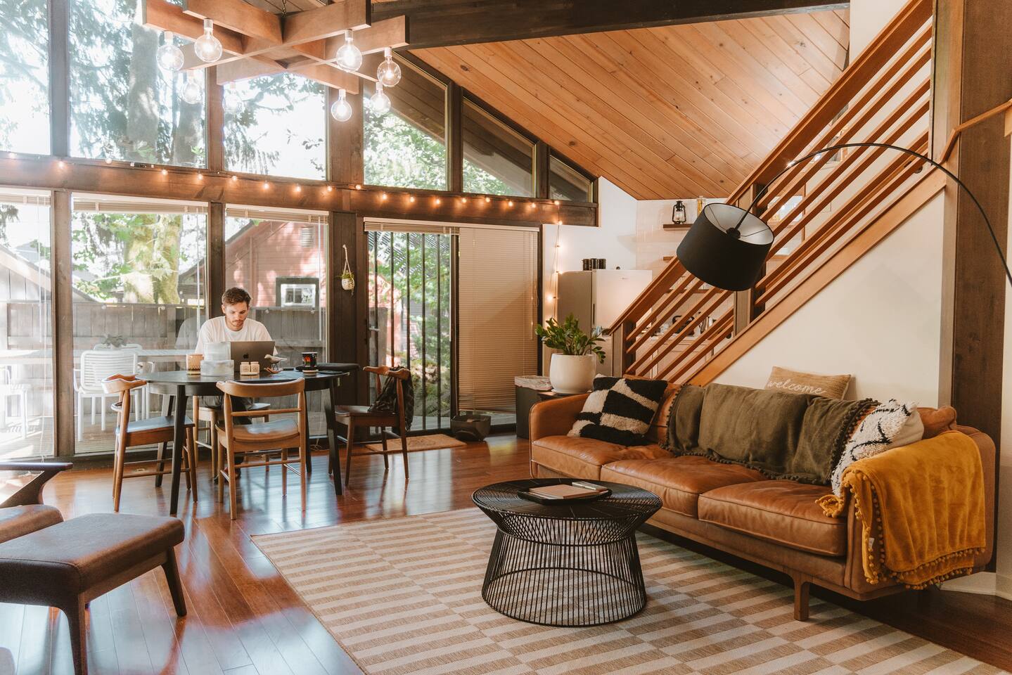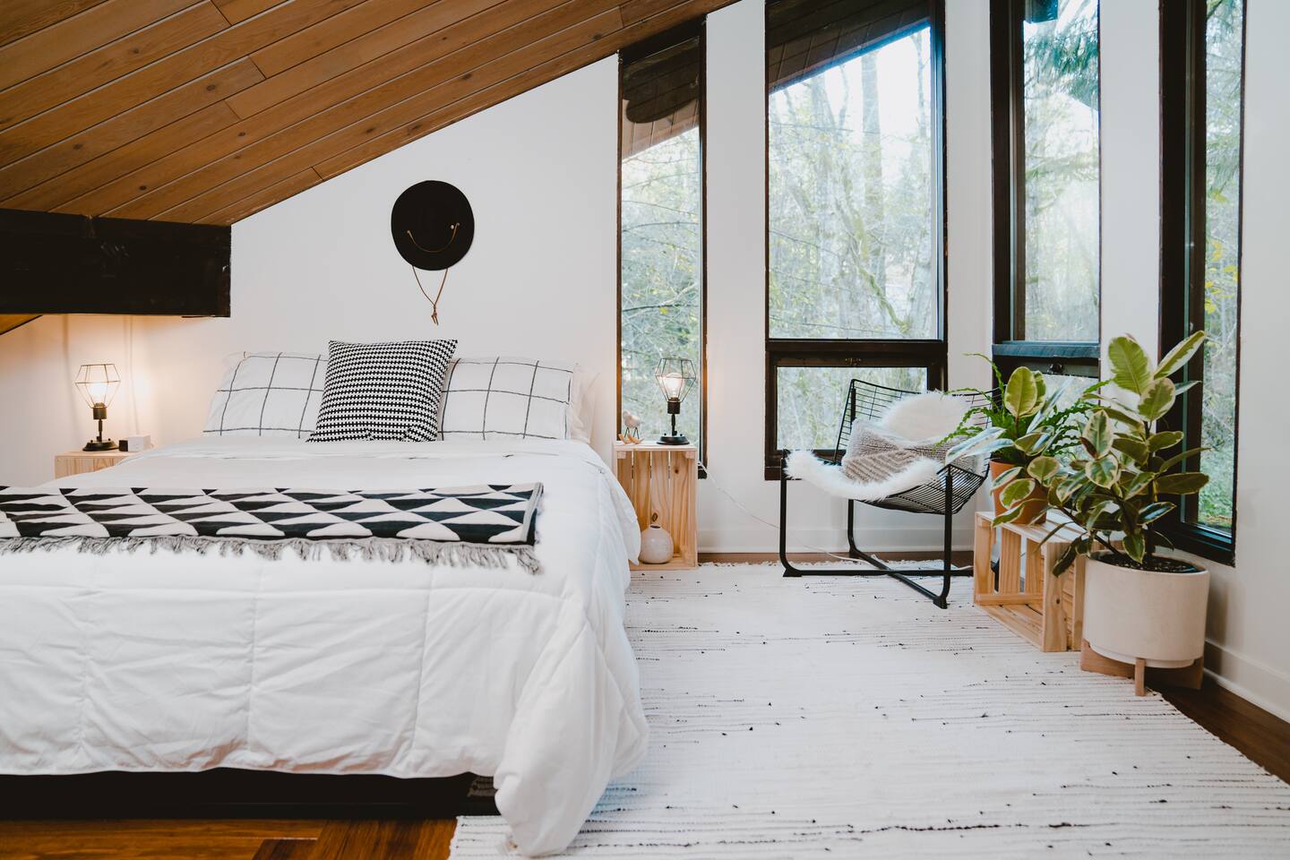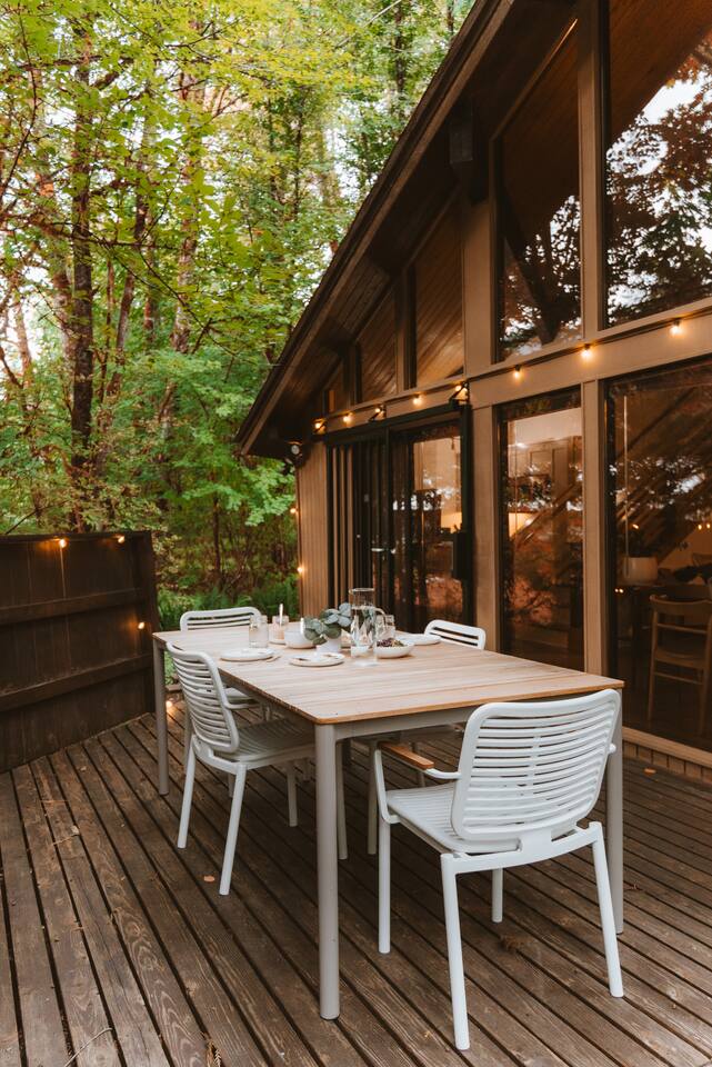 SkyCabin boasts a mid-century style design, dramatic angles, floor-to-ceiling windows & an abundance of natural light - perfect for snapping your next ins-tagram worthy photos! The freshly renovated space comfortably accommodates up to four adults, with two luxuriously outfitted queen-sized beds, perfect to retire in after a full day’s worth of exploration—or relaxing! With a fully-equipped modern kitchen, you can indulge in the full culinary experience, complete with a well-maintained barbeque grill & outdoor seating area. With access to a gas stove, microwave, cookware, dishwasher, chef’s knives & essential cooking items, you can have fun whipping up creative meals from scratch. Upon waking, head downstairs and flip on the cozy gas fireplace while you curl up with a hot cup of jo, or take advantage of the flat-screen TV, where you can stream your favorite shows. From the keyless entry & digital thermostat to the boot dryer & full-sized washer/dryer, the details at SkyCabin will make your stay exceptional.