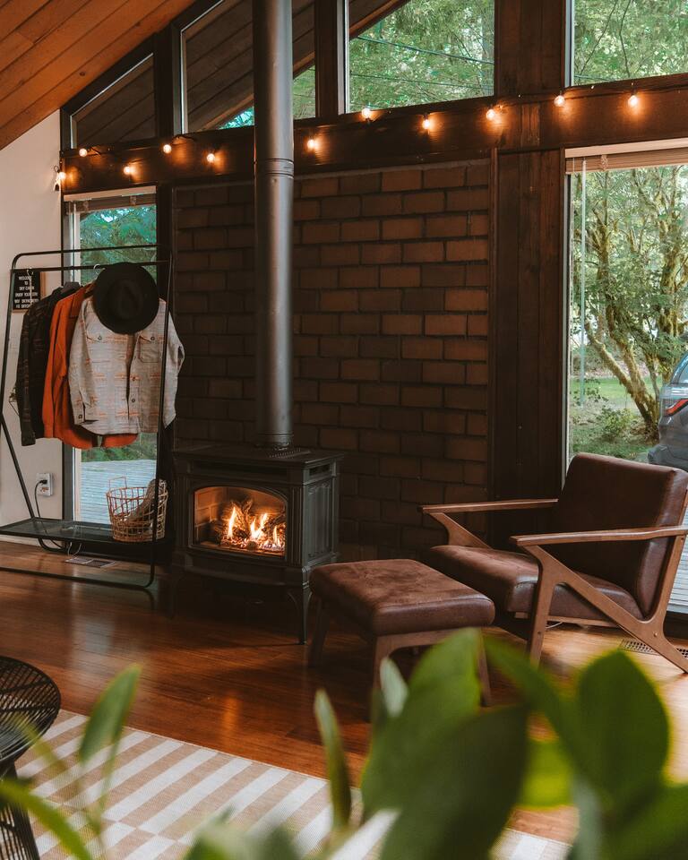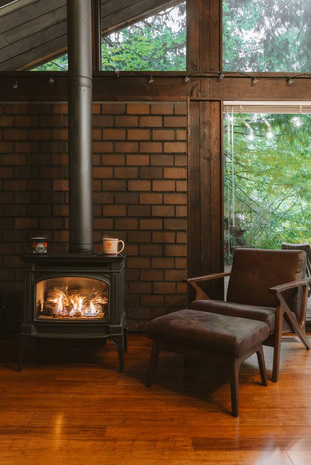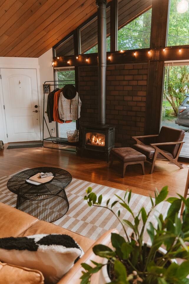 Most of our guests love the occasional sound of trains, which can be heard in the distance. However, we have provided earplugs on the kitchen counter for sensitive sleepers. We are located in the center town of skykomish. Please note, despite our drive way is little tucked away from the tree, we are close to the neighbors. It is not a secluded cabin. It’s regular residential lot in a small town. Smart TV: In the main living area, you will find a Smart TV making it easy to watch pre-downloaded movies or stream entertainment from your laptop or Apple device. We also have Roku TV, which gives you the option to sign in to your own account (or create a new one) to access Netflix, youtube, etc… Furnace: This is the main source of heat for the cabin, and can be controlled by the digital Nest thermostat (on the wall by the front door). If the thermostat appears to be off, simply reset the WiFi hotspot via the tablet (resting by the couch). For your convenience, refer to the instructions on the back of the tablet. Fireplace: If you don’t want the fireplace on, simply use the remote control to turn down the temperature as opposed to switching the fireplace off entirely. This is to ensure that the fireplace heat kicks in should there be a power outage that leaves the furnace without power. You will find the remote on the ledge of the wall behind the fireplace. Chef’s Kitchen: You will find a gas stove, microwave, cookware, bakeware, dishwasher, chef’s knives, coffee maker, toaster, electric kettle, pizza cutter & wine opener. We also provide coffee, tea, creamer & sugar.