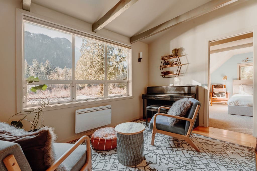 I wish I could buy this cabin and make it my permanent home! Amazing views of Mount Index and the Skykomish River. Beautiful property to explore with its own mini orchard! Although the cabin does not have AC it felt very comfortable with plenty of fans and windows allowing the cool mountain breeze and sounds of the river to fill the home. Hoping to return in the future to further explore the gorgeous Cascades region.
